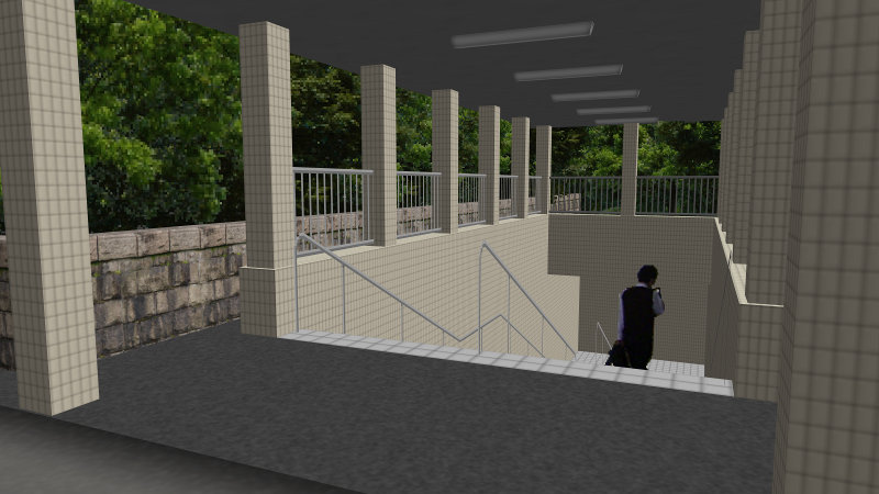 地形は無理なのですが、施設プラグインなどでは、透過させて地下部分を表示出来るようになっています。(画像参照→) 光の表現って難しいですね。 ということで、夜間発光は見送りました。ご了承を。 タイルの色は、3色から選択できます。 某氏のを参考にして構文上で色を変えてみました。 広電1000形・5100形については、屋根上の機器がよく分からなかったりして、まだかかります…。 |